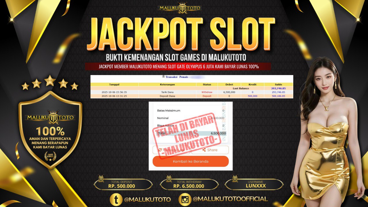 Selamat kepada User id : LUN*** Telah berhasil mendapatkan kemenangan besar pada permainan SLOT GATE OLYMPUS kemenangan Sebesar Rp.6,500,000, Setelah mengisi formulir withdraw dengan kurung waktu hanya 3 – 5 menit pihak malukutoto sudah melakukan transfer kepada pemilik Userid dan dana sudah dapat di cairkan oleh pemenang. Bukti pembayaran yang kami berikan merupakan bukti pembayaran yang SAH / VALID yang langung di dapatkan melaui tanda transfer transaksi dari Bank yang di tuju.